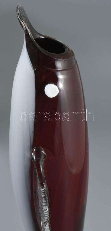 Murano kézzel készült halfigura váza. Részben színezett hutaüveg, jelzés nélkül, hibátlan, m: 38 cm