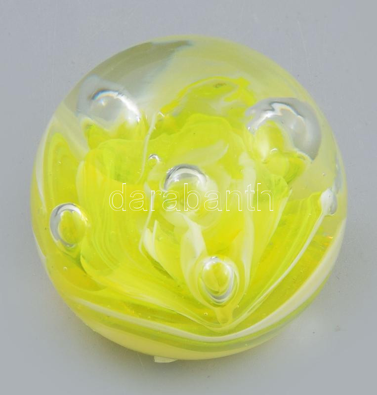 Murano levélnehezék, anyagában sárga színezéssel, m: 6 cm
