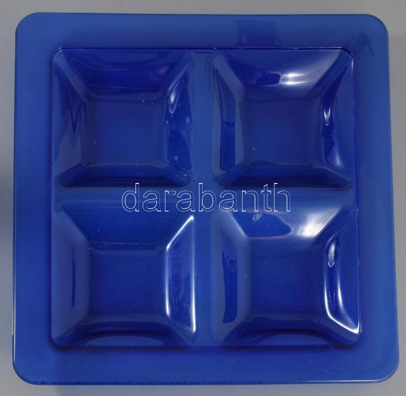 Négyosztatú királykék üveg díszelem, hibátlan, 30x30 cm