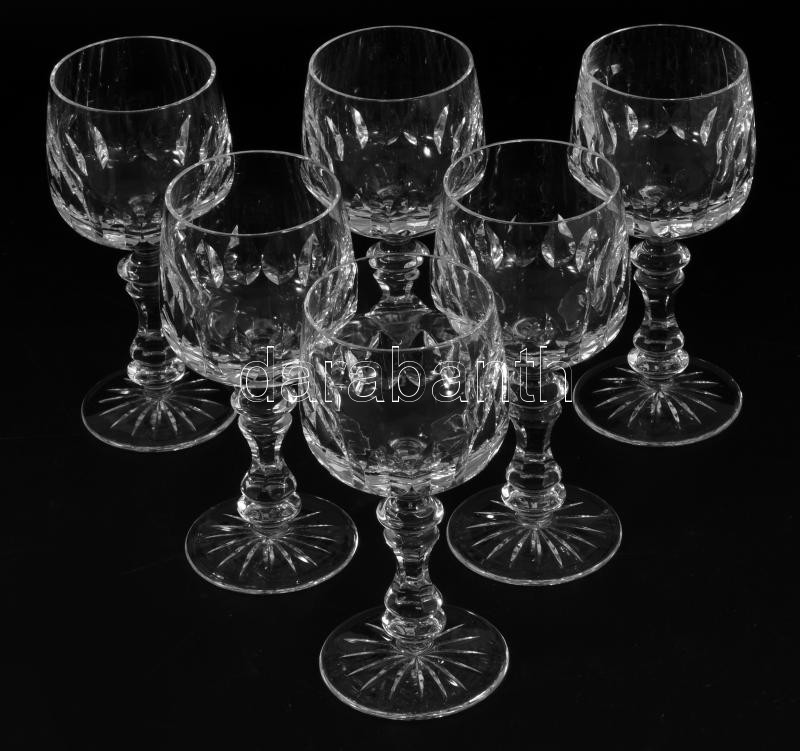 Ólomkristály talpas borospohár garnitúra, 6 darab, hibátlan, m: 15,5 cm