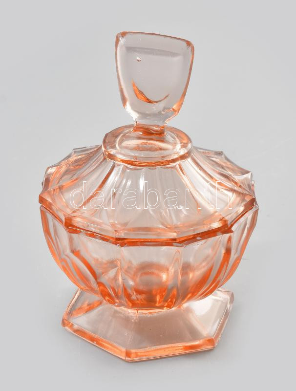 Rózsaszín üveg kínáló, fedéllel, jelzés nélkül, hibátlan, m: 14 cm
