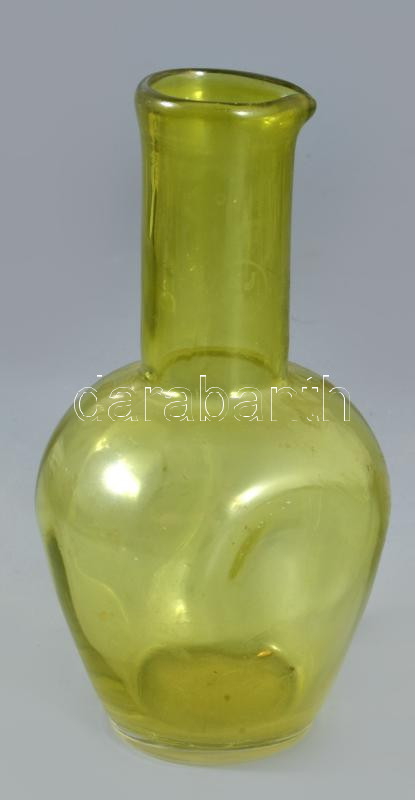 XIX. sz vége. Urán zöld kiöntő. Kézzel készült hutaüveg, hibátlan 17 cm