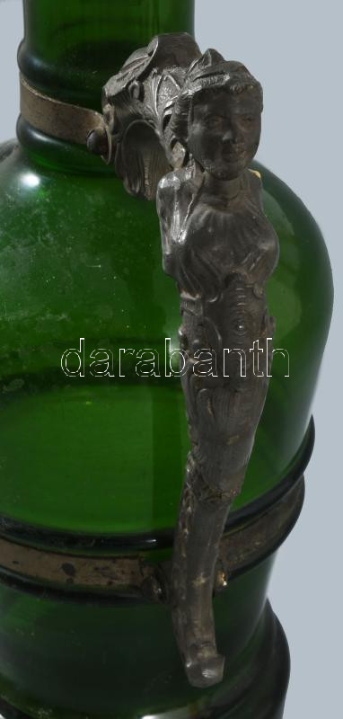 cca 1900 Aktiengesellschaft für Glasindustrie vorm. Friedr. Siemens italos csatos üveg, jelzett záróval, plasztikus női büszt figurás fogóval, m: 28 cm