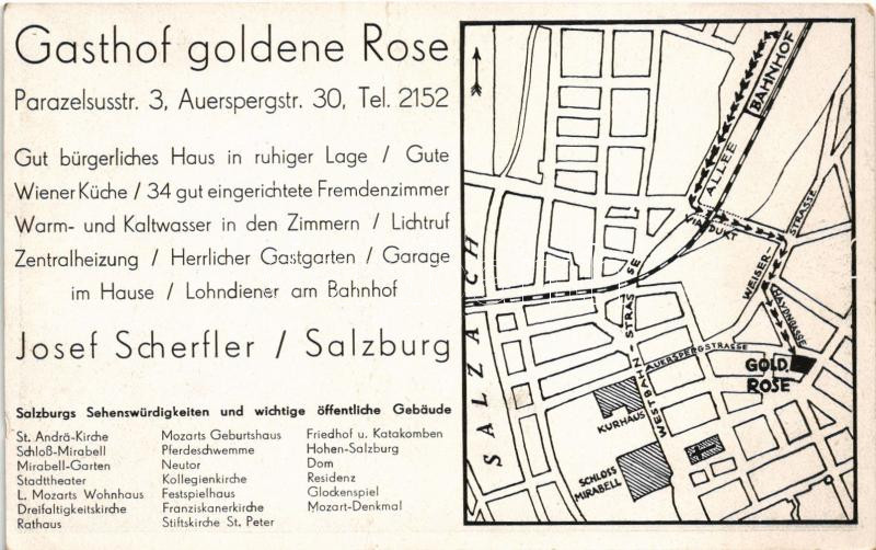 Salzburg, Gasthof zur Goldenen Rose / guest house, with advertisement on the backside (non PC) (EM)