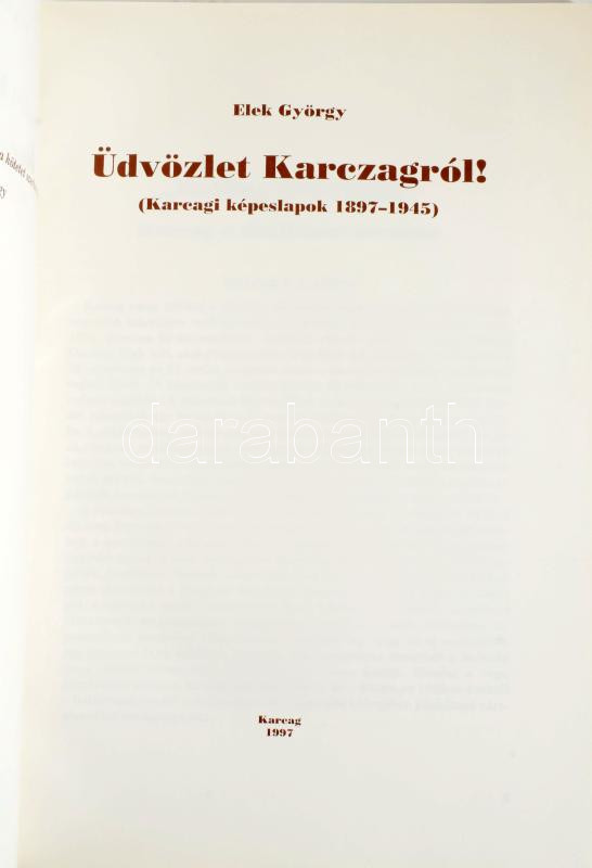 Elek György: Üdvözlet Karczagról! (Karcagi képeslapok 1897-1945). Karcag, 1997, Karcagi Nyomda Kft. Kiadói papírkötésben.