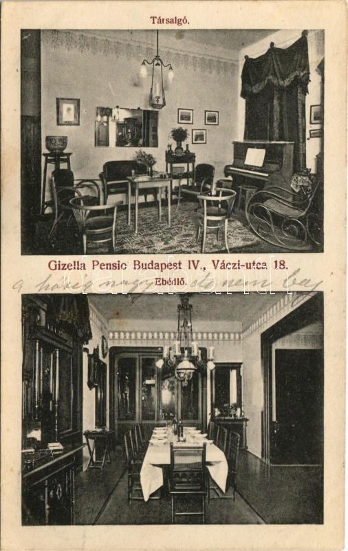 1914 Budapest V. Gisella Pensio, társalgó és ebédlő belső. Váci utca 18. (fl)