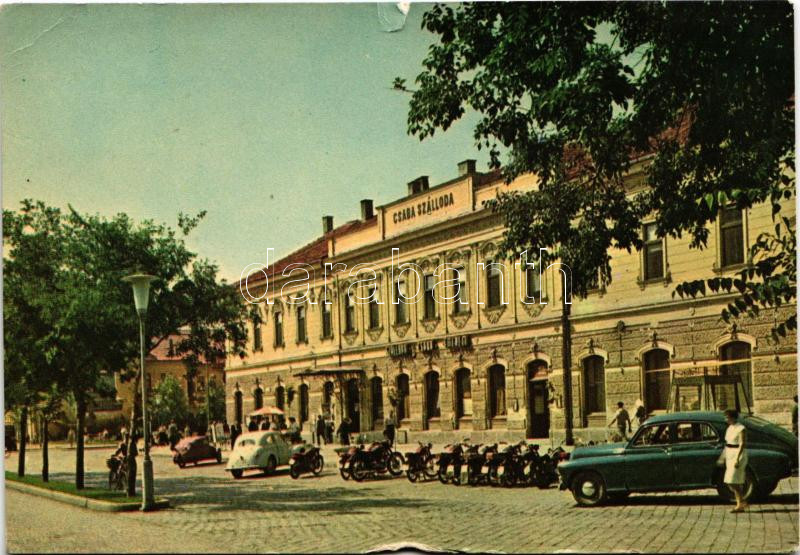 1965 Békéscsaba, Csaba szálloda, automobil, motorkerékpár. Képzőművészeti Alap. Foto Bakonyi (szakadás / tear)