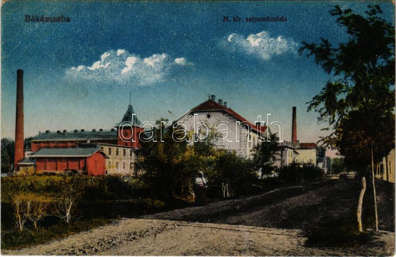 Békéscsaba, M. kir. selyemfonoda, selyemgyár. Vasúti levelezőlapárusítás 21. sz. 1918. (EK)