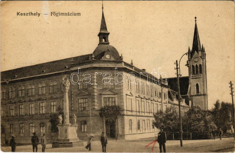 Keszthely, főgimnázium és római katolikus templom. Mérei Ignác kiadása (EK)