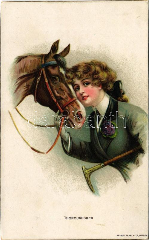 "Thoroughbreds" Lady art postcard, lady with horse. Arthur Rehn & Co. No. 424. litho