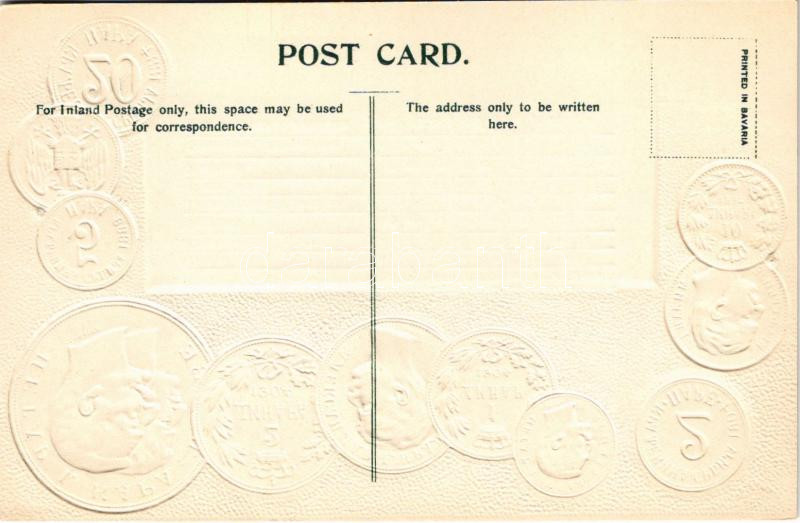 Serbien / Servia / Set of coins, currency exchange chart and flag of Serbia. H.S.M. Emb. litho (lyukak / pinholes)