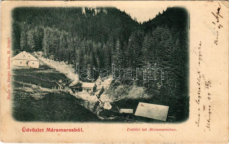 1899 Máramarossziget, Sighetu Marmatiei; Erdőőri lak Máramarosban. Mayer és Berger kiadása / forestry, forester's house (EK)