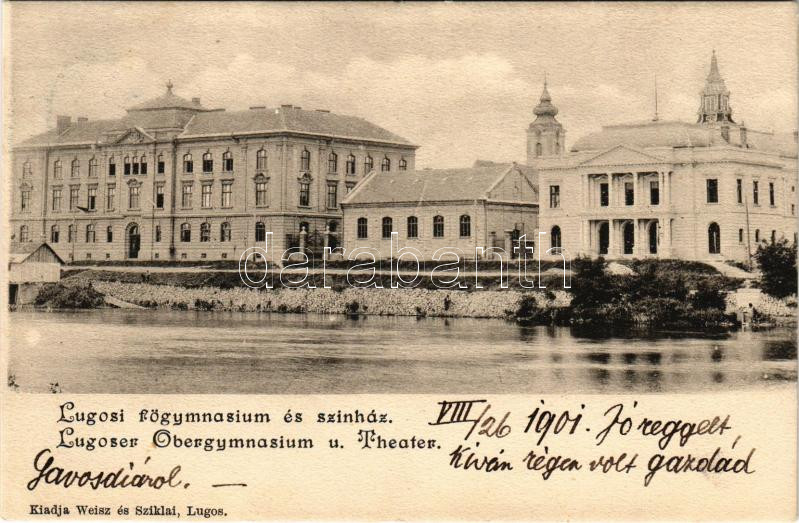 1901 Lugos, Lugoj; M. kir. főgimnázium és színház. Weisz és Sziklai kiadása / grammar school, theatre