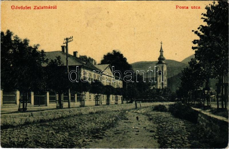 1909 Zalatna, Zlatna; Posta utca, Román ortodox templom. W. L. 3202. / street view, Romanian Orthodox church