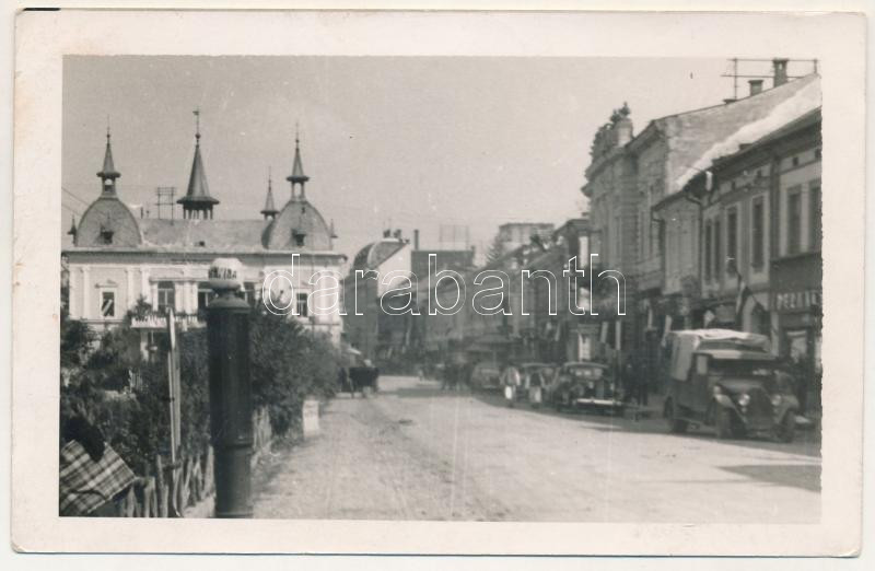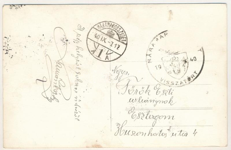 1940 Máramarossziget, Sighetu Marmatiei; bevonulás, automobil, teherautó / entry of the Hungarian troops, automobile, truck. photo + "1940 Máramarossziget visszatért" So. Stpl (fl)
