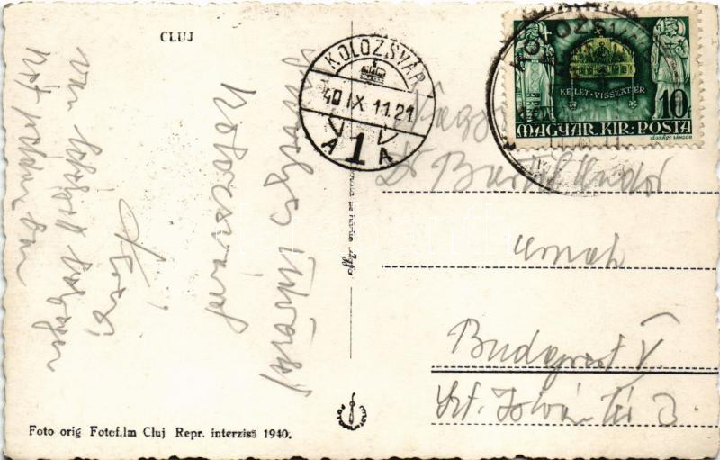 Kolozsvár, Cluj; Biserica Sf. Mihai / Szent Mihály templom / church + "1940 Kolozsvár visszatért" So. Stpl.