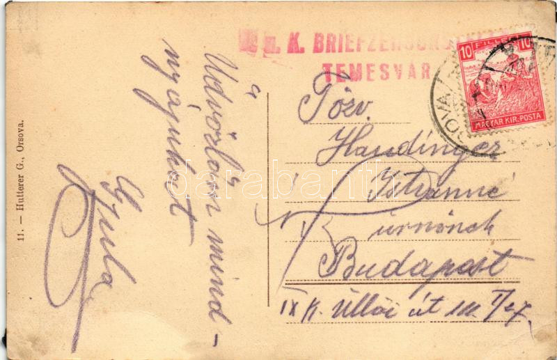 Orsova, Kazán-szoros. Hutterer G. / Kasanpartie / gorge + "K.u.k. Briefzensurstelle Temesvár" (ragasztónyomok / glue marks)