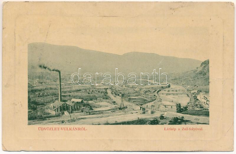 Vulkán, Zsilyvajdejvulkán, Jiu-Vaidei-Vulcan, Vulcan; látkép a Zsil folyóval. Ferenczi Emil, W. L. Bp. 5374. / view with river Jiu (fa)