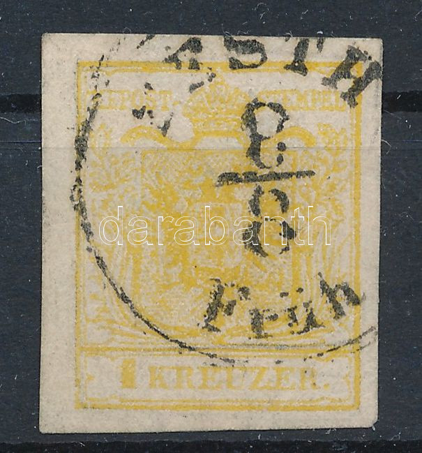 1850 1kr MP III krómsárga szép szélekkel "PESTH Früh"