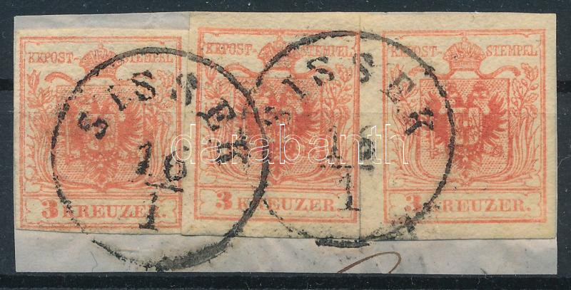 1850 3 x 3kr HP III kivágáson, kiemelt sas "SISSEK"