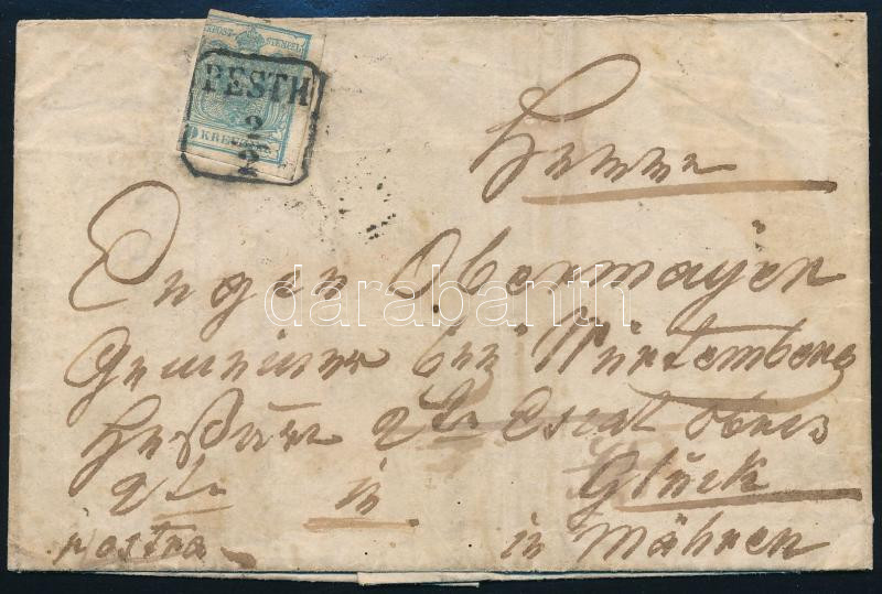 1851 9kr HP I. típus Morvaországba küldött levélen "PESTH" - "WIEN" - Mähren
