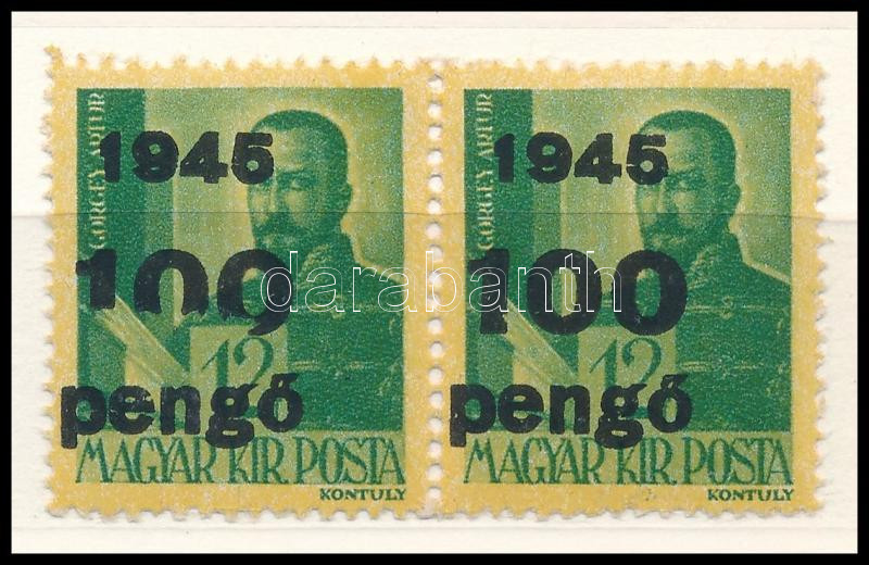 1945 Kisegítő 100P/12f pár. a bal oldali hiányos felülnyomással