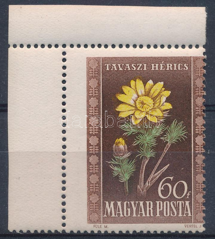 1950 Virág 60f ívsarki bélyeg látványosan elfogazva
