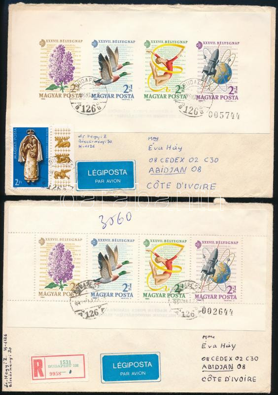 1966 Bélyegnap ajándék blokkok 2 db légi levélen Elefántcsontpartra