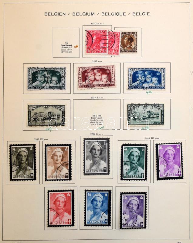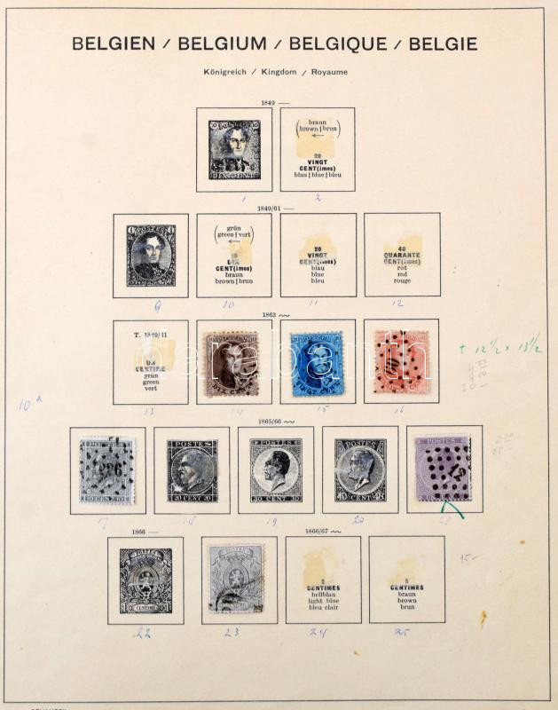 Belgium gyűjtemény maradvány az 1863-1929 közötti időszakból, benne vasúti bélyegek is, előnyomott albumlapokon