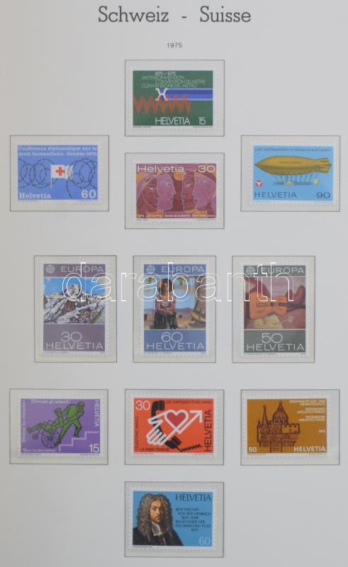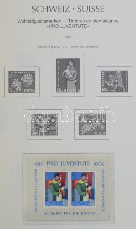 Svájc gyűjtemény a 60-70-es évekből 1983-ig + kevés korábbi anyag szinte új állapotú Leuchtturm falcmentes előnyomott albumban 1945-től.