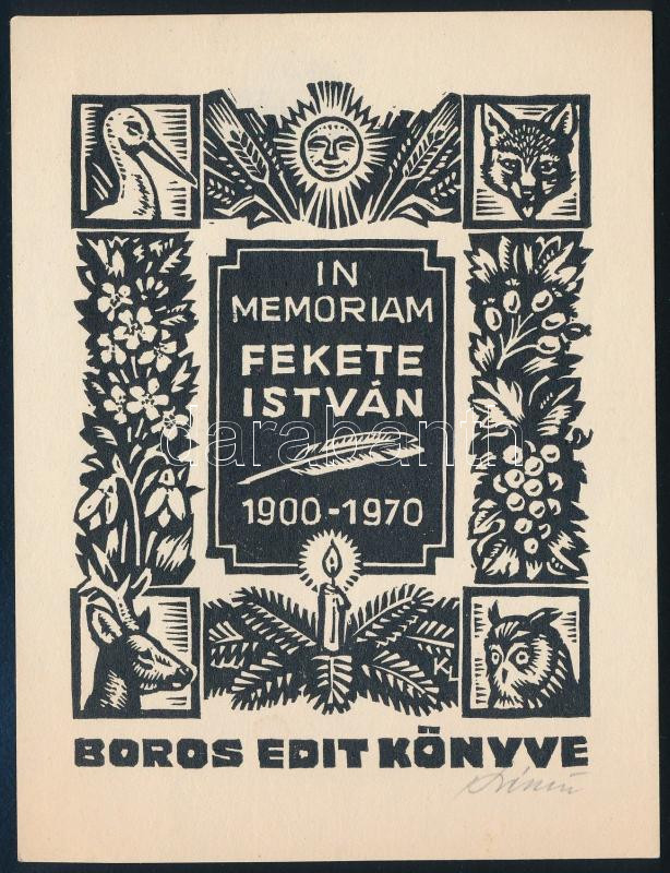 Kékesi László (1919-1993): In memoriam Fekete István, linó, papír, jelzett, 14×10,5 cm