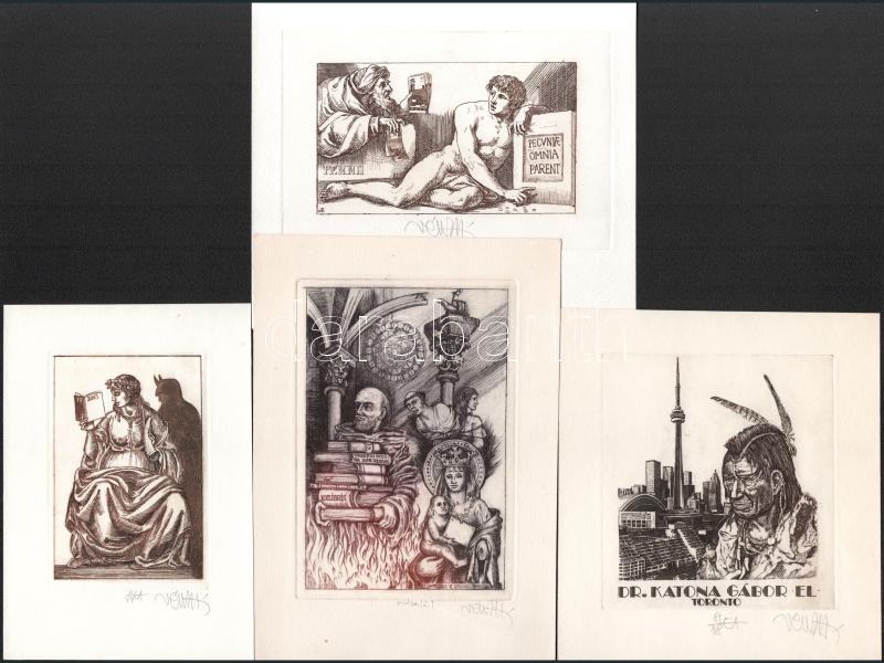 Vén Zoltán (1941- ): 4 db sokszorosított grafika). Rézkarc, papír, mindegyik jelzett, klf. méretekben