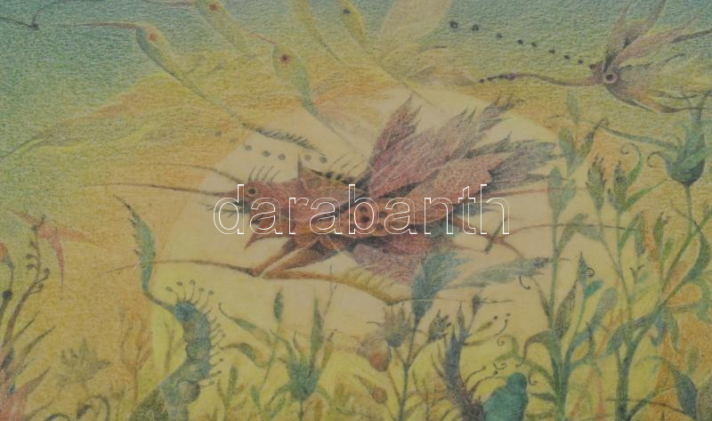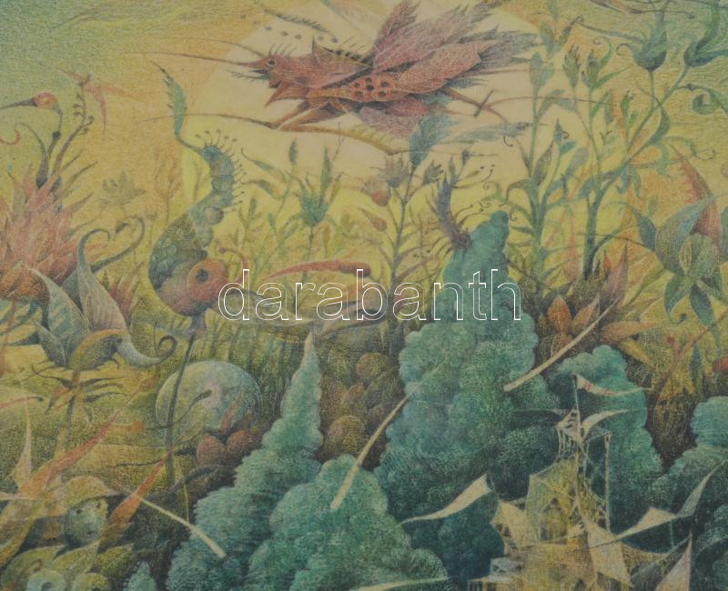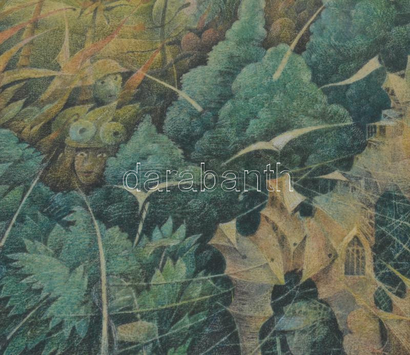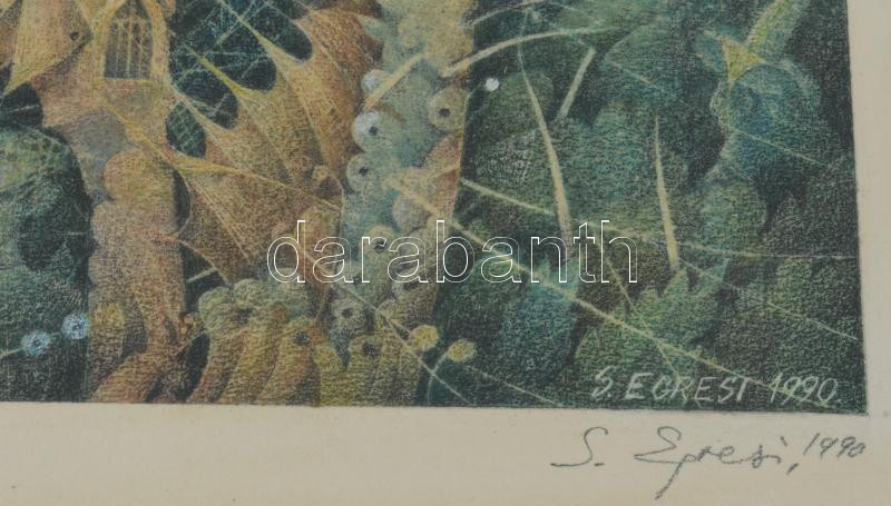 Egresi Zsuzsa (1954-): Piccola dimorra estiva, 1990. Vegyes technika (nyomat?), papír, jelzett, üvegezett keretben, 27,5×21 cm.