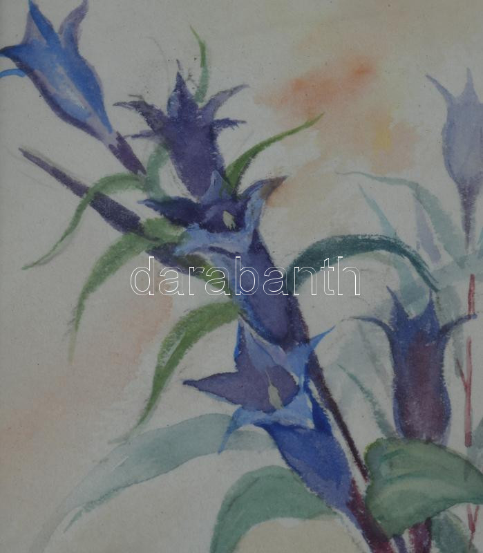 Elisabeth Kesselbauer-Laske (1884-1975): Virágszálak. Akvarell, papír, jelzett, 10x7,5 cm