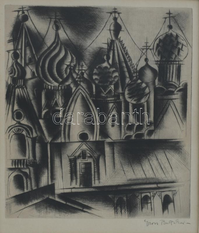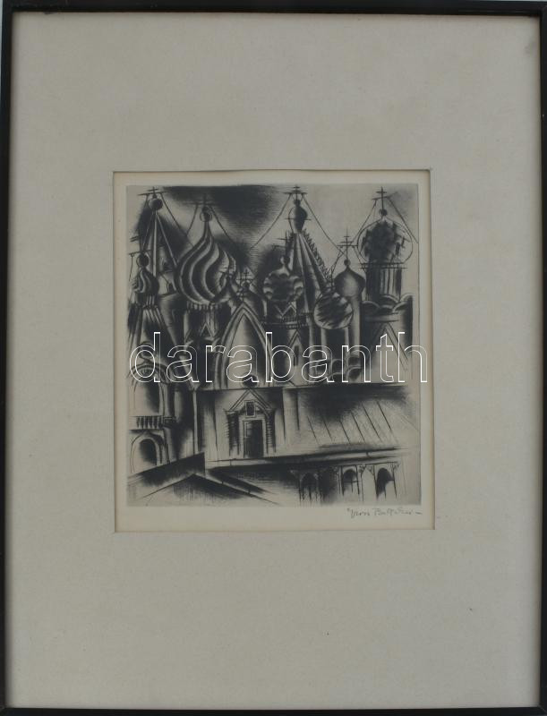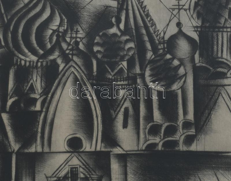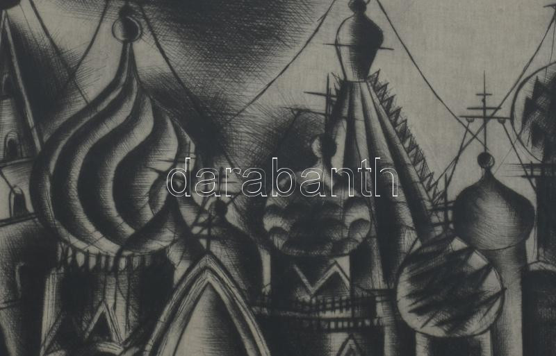 Gross-Bettelheim Jolán (1900-1972): Orosz templomtornyok. Hidegtű, papír, jelzett. Üvegezett keretben. 23×19 cm.