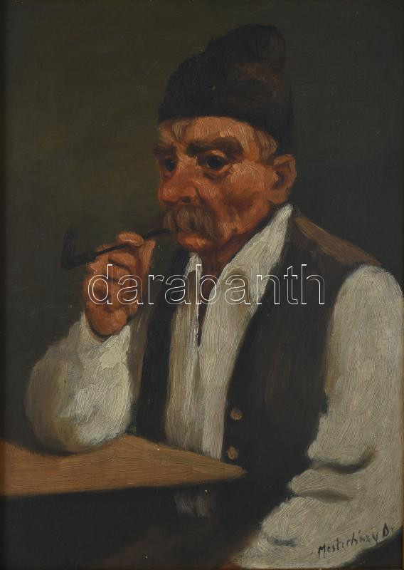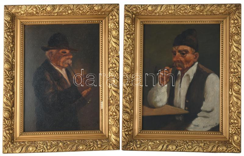 Mesterházy Dénes (1900-1949 körül), 2 db mű: Pipázó férfi portré. Olaj, karton. Jelzett. Dekoratív, kissé sérült fakeretben. 34×24 cm