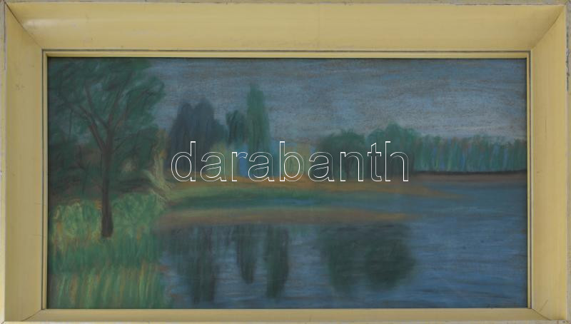 Olvashatatlan jelzéssel: Vízpart. Pasztell, papír, üvegezett fakeretben, 35,5×60 cm.