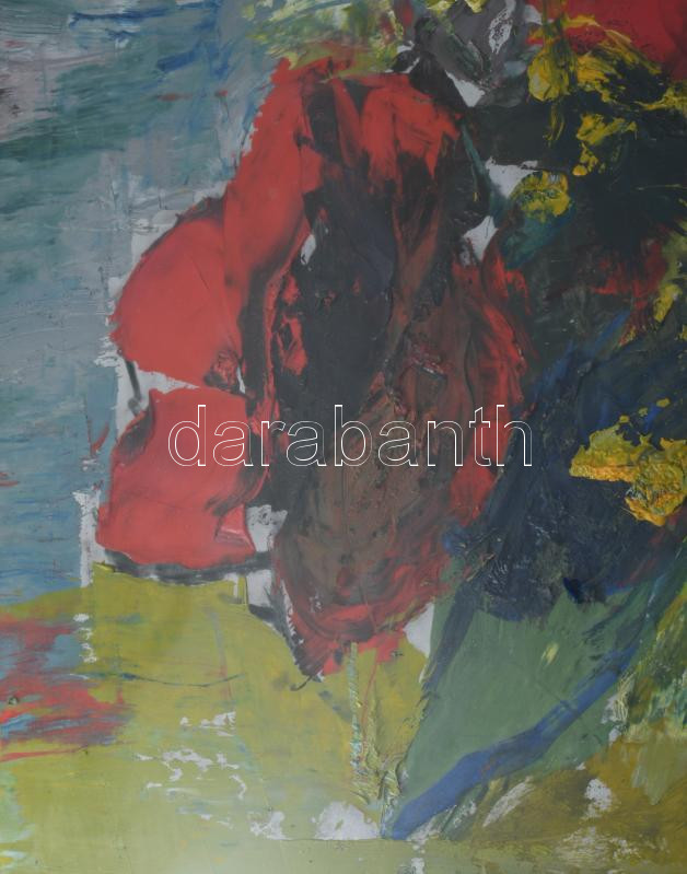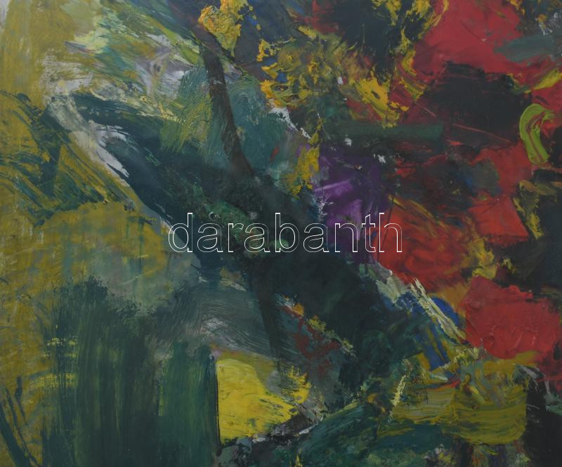 Sarkantyu Simon (1921-1989): Csendélet. Olaj, farost. Jelzett. Hátoldalán Képcsarnok Vállalat címkéjével. 70x50 cm. Üvegezett fakeretben.