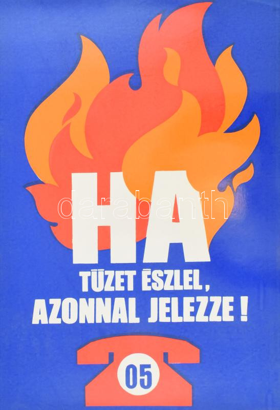 "Ha tüzet észlel, azonnal jelezze!", nagyméretű, retró munkavédelmi tájékoztató plakát, laminált karton, 66x46,5 cm
