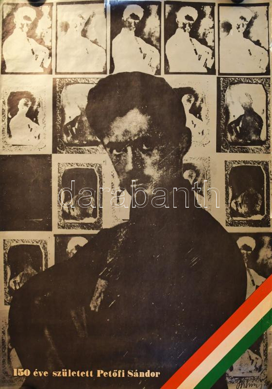 Szilvásy Nándor (1927-2011): 150 éve született Petőfi Sándor, 1972. Plakát, ofszet, papír, jelzett a plakáton, Offset Nyomda, feltekerve, lapszéli szakadásokkal és gyűrődésekkel, 96x68 cm