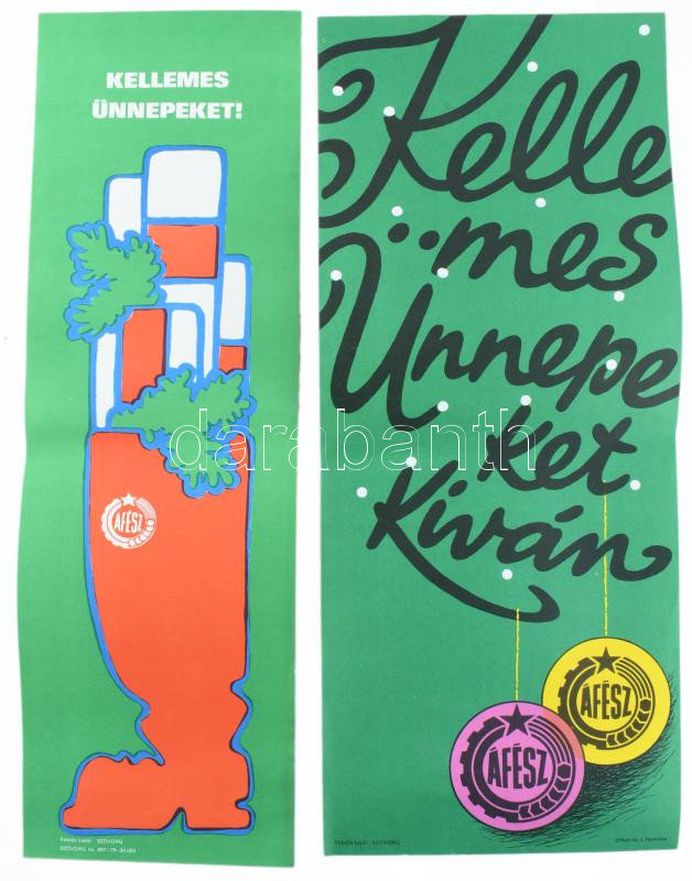 ca 1980 2 db ÁFÉSZ ünnepi retro reklám plakát. Hajtva. 20x48 cm