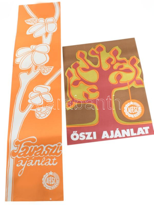 ca 1980 ÁFÉSZ tavaszi ajánlat, őszi ajánlat. 2 db retro reklám plakát, hajtva, 23x96 cm, 35x48 cm