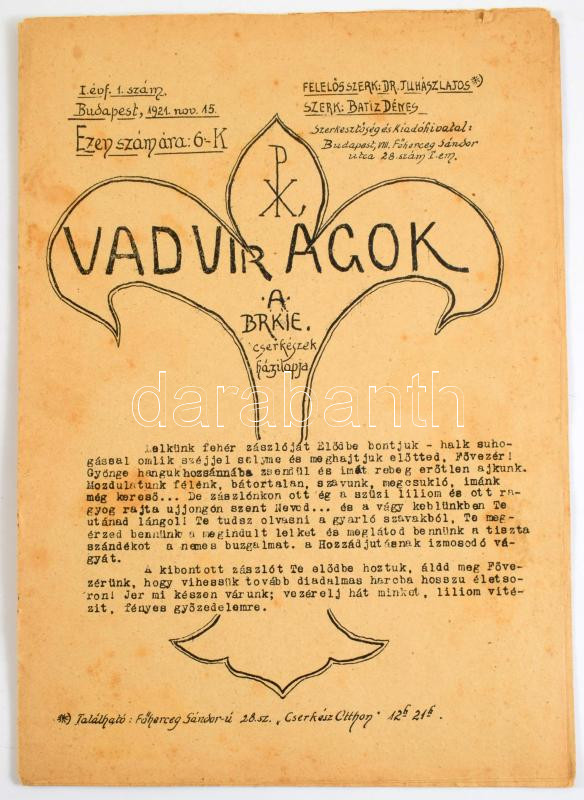 1921 Vadvirágok a BRKIE cserkészek házilapja I. évf. I. száma. Ritka! 14p.