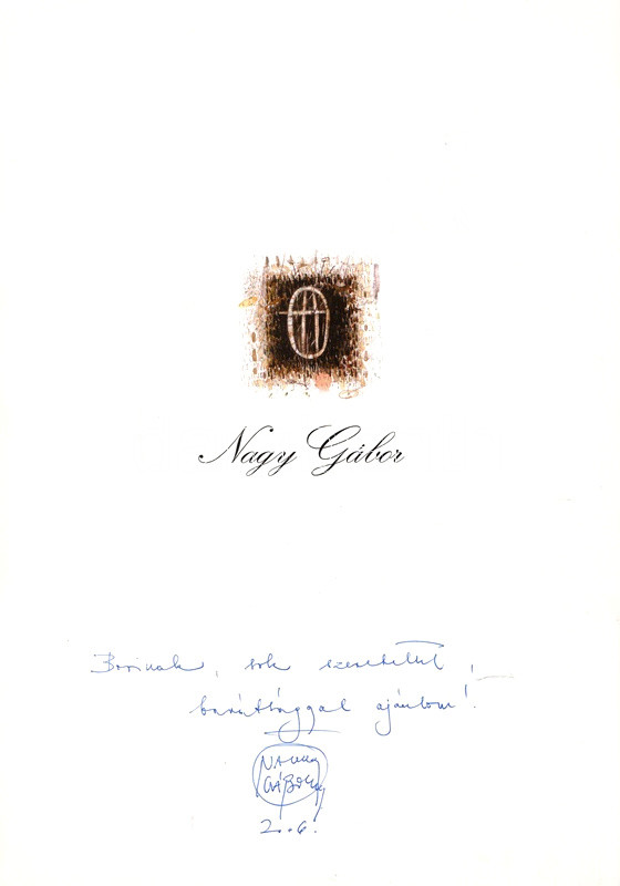 Dedikált: "Borinak, sok szeretettel, barátsággal ajánlom! Nagy Gábor, 2006."