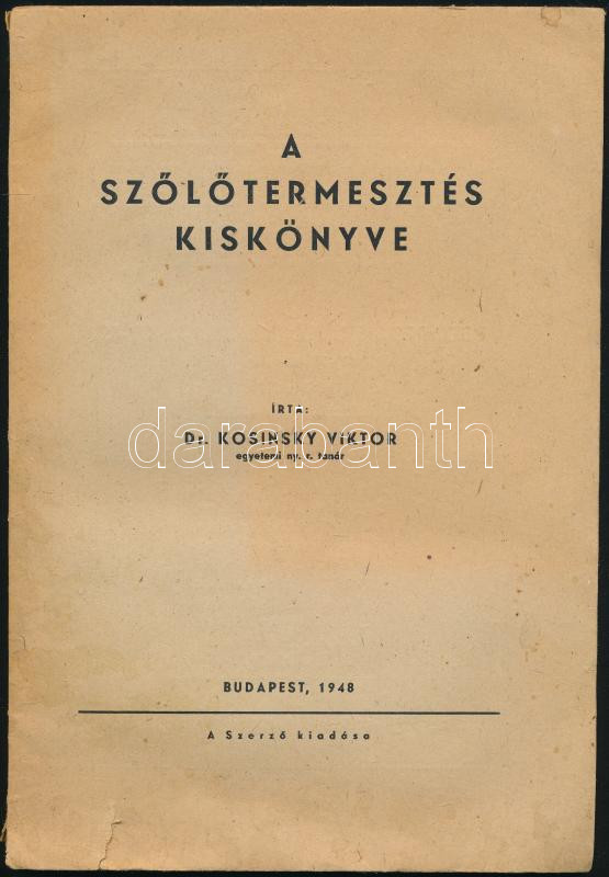 Kosinsky Viktor: A szőlőtermesztés kiskönyve. Bp., 1948., Földmívelésügyi Minisztérium. 65p. Kiadói papírkötés, illusztrációkkal, reklámokkal