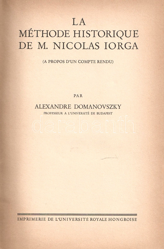 (Budapest), [1938]. Imprimerie de L'Université Royale Hongroise. 323 + [1] p. Egyetlen francia kiadás.