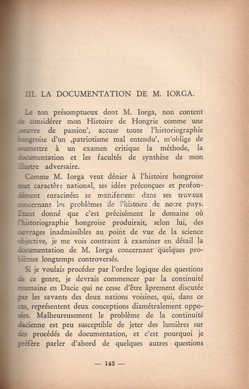 Domanovszky Sándor (1877-1955) történész, egyetemi tanár tanulmánya tételesen cáfolja a bámulatosan termékeny Nicolae Iorga román középkorász (1871-1940) Erdéllyel és a magyarság történetével kapcsolatos állításait. A politikusként, költőként és tanulmányíróként is elhíresült Iorga kutatási és adatkezelési módszerei Domanovszky szerint egyszerre mondanak ellen a tudományos normáknak és a tényeknek, a román kutató módszertana leginkább a tendenciózus fantáziálás és történelemhamisítás tárgykörébe esik.