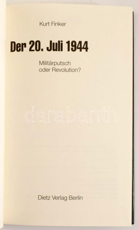 Kurt Finker: Der 20. Juli 1944. Militärputsch oder Revolution? Berlin, 1994, Dietz. Német nyelven. Fekete-fehér képanyaggal illusztrált. Kiadói egészvászon-kötés, kiadói papír védőborítóban.