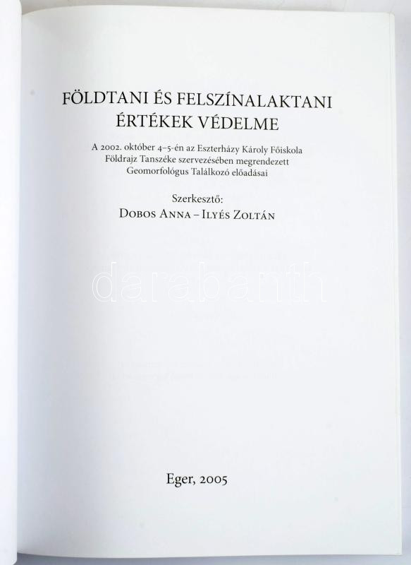 Dobos Anna (szerk.) Ilyés Zoltán (szerk.): Földtani és felszínalaktani értékek védelme Eger, 2005. 382p. Kiadói papírkötésben