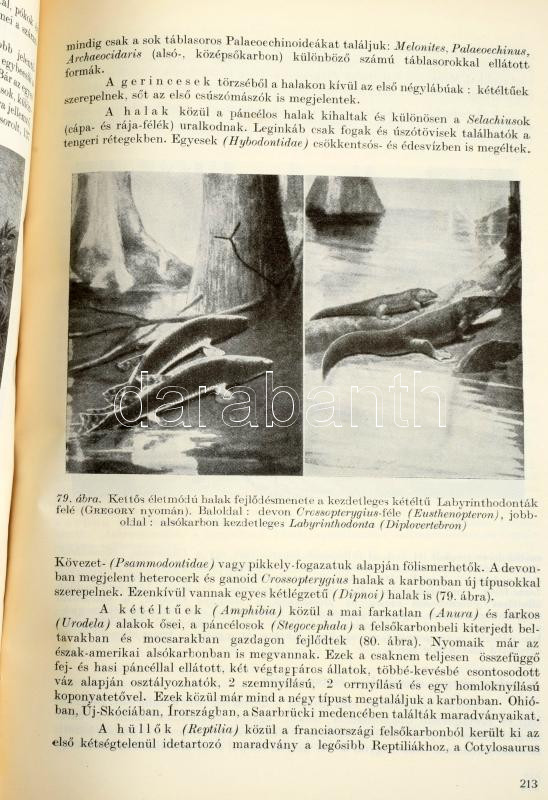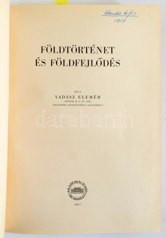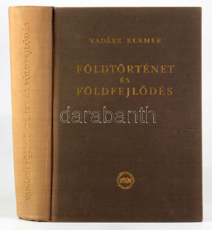 Vadász Elemér: Földtörténet és földfejlődés. Bp., 1957., Akadémiai Kiadó, 847 p. + 30 t. Gazdag fekete-fehér képanyaggal, kihajtható táblákkal, térképekkel illusztrált. Kiadói egészvászon-kötés.